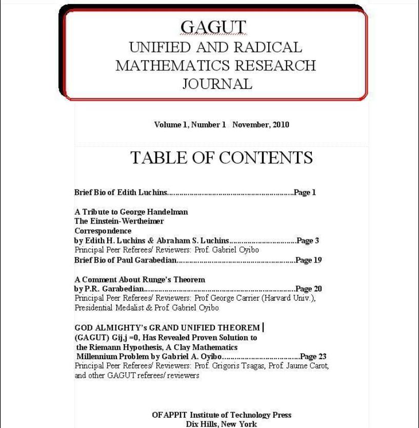 GAGUT UNIFIED AND RADICAL MATHEMATICS JOURNAL VOL.1 NUMBER 1 NOVEMBER