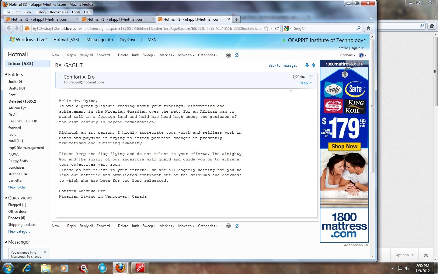 in History, and thereby declaring Professor G. Oyibo as the Greatest Mathematics